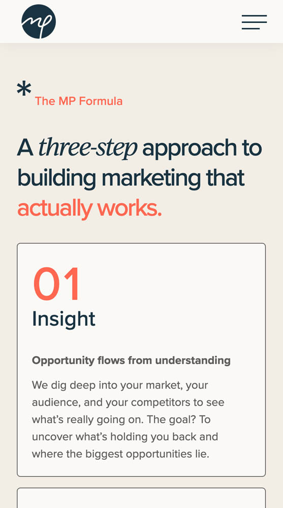 The end result is a website that not only represents the business and brand authentically but also helps potential clients feel confident and inspired to grow their business with Sarah and the team’s expertise.